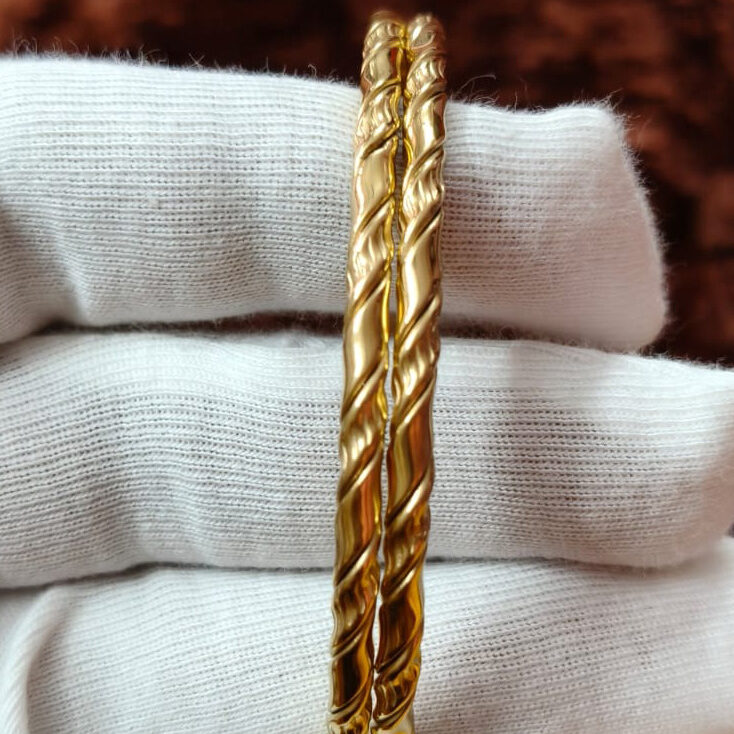 Graceful and timeless, the Sitara Nargis Dual-Tone Bangles blend classic form with exquisite detailing. Crafted in a graceful harmony of gold and silver tones, these bangles feature dainty floral motifs studded with twinkling stones—like blossoms frozen in gold. Slender interwoven bands add depth and movement, creating an ethereal shimmer with every gesture. Perfect for layering or making a delicate statement on their own, these bangles exude charm that transcends seasons and styles.