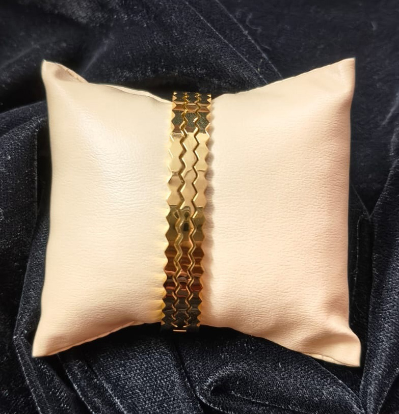 Crafted from polished gold or rhodium, the Modern Mosaic Bangle is a testament to the art of jewelry design. Its intricate geometric pattern shimmers and gleams, adding a touch of glamour to any wrist.